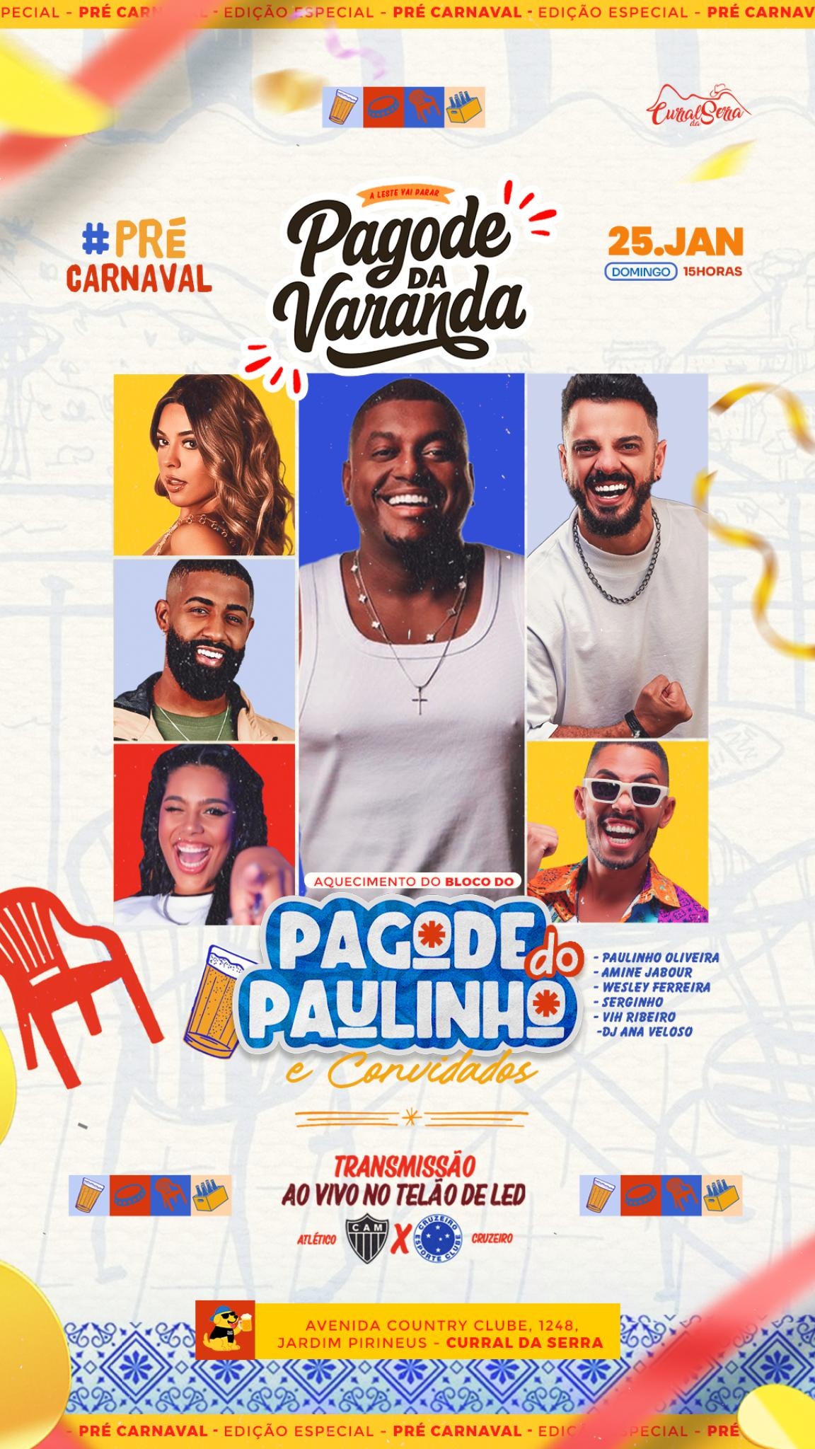 Vem aí a uma Edição Especial de Pré-Carnaval do Pagode da Varanda— um encontro autêntico de pagode com axé e samba de roda que vai transformar seu domingo num momento inesquecível!