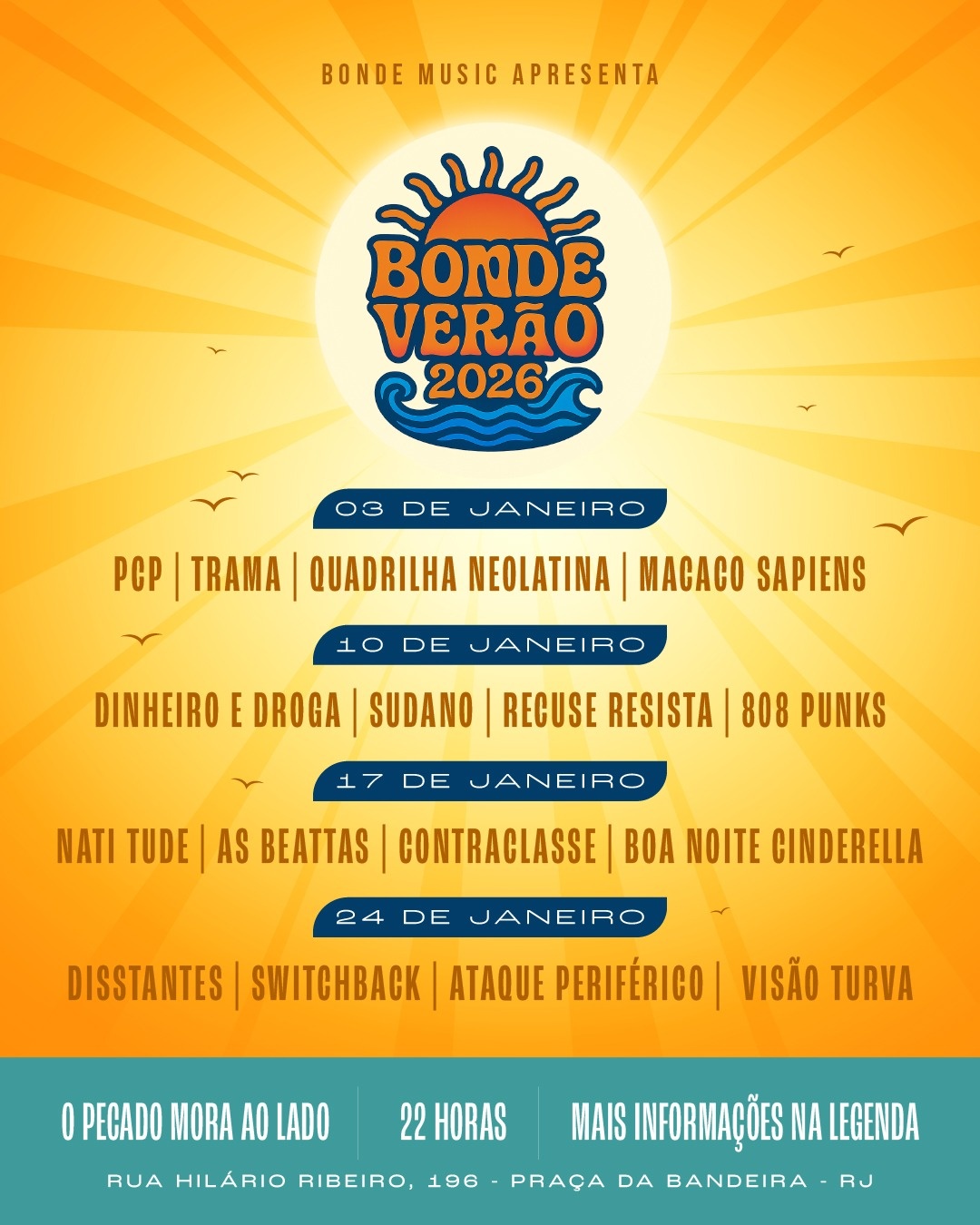 O Festival Bonde Verão 2026 vem pra te abraçar depois daquela praia e deixar sua noite muito mais crocante