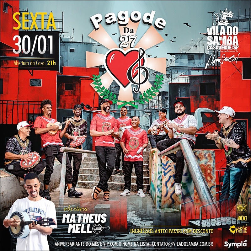 RODA DE SAMBA COM PAGODE DA 27 E MATHEUS MELL NA VILA DO SAMBA - 31 Jan 2026 in São Paulo - Tickets & Info | VibeIndex