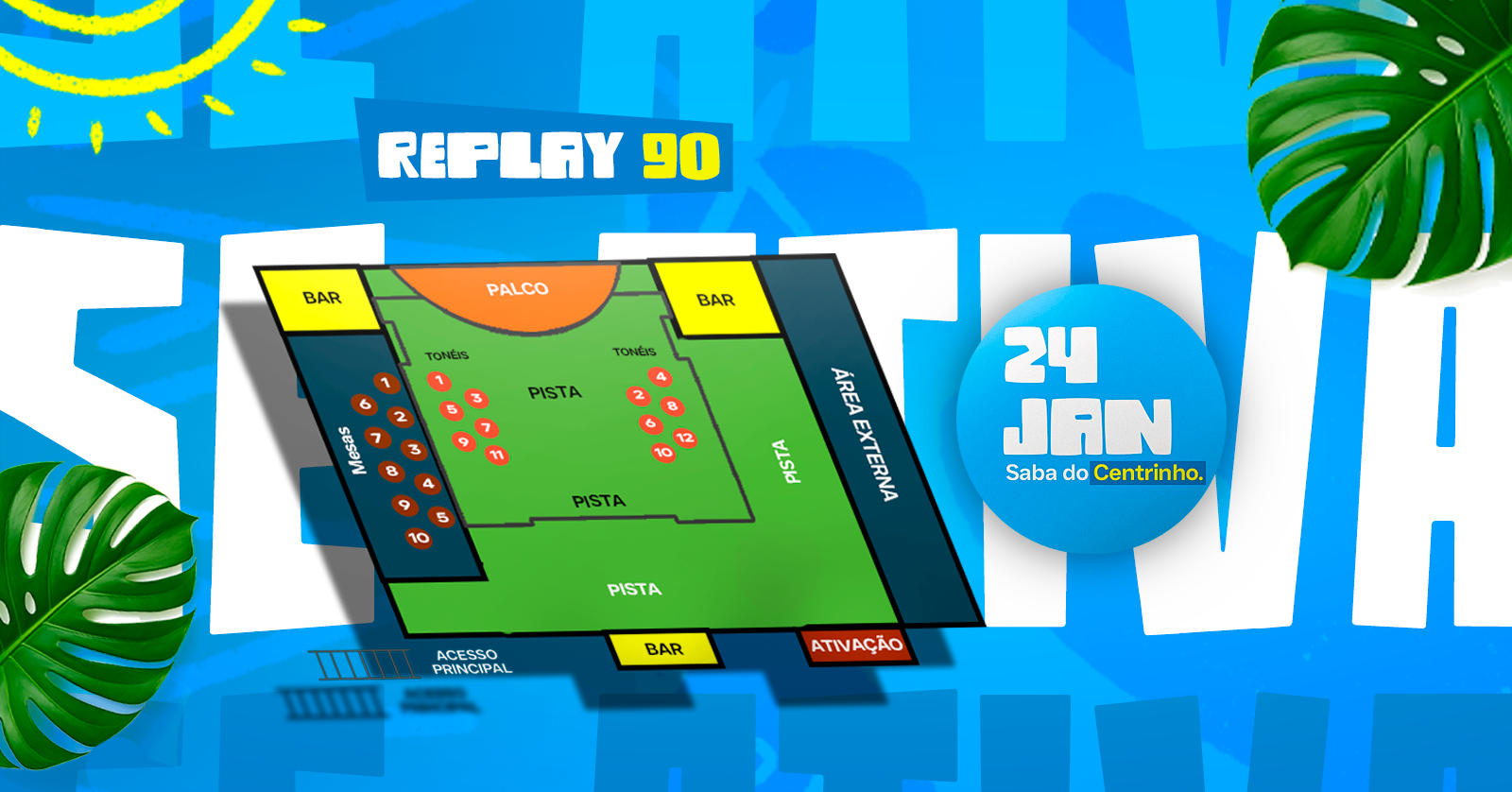 No verão de 2024, o Se Ativa colocou a festa Replay90 no calendário! O local? A SABA do centrinho de Atlântida.